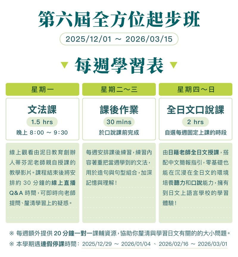 【第六屆】全方位日文起步班(2025.12.01開課)
