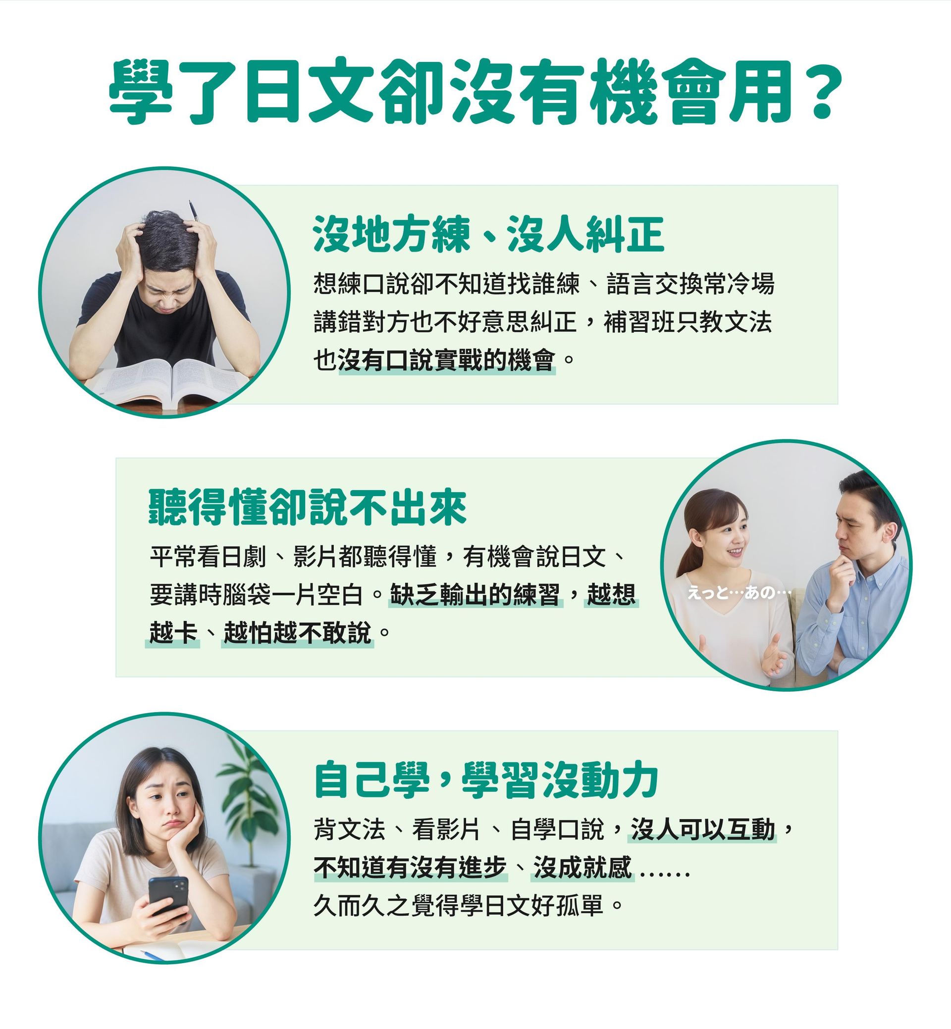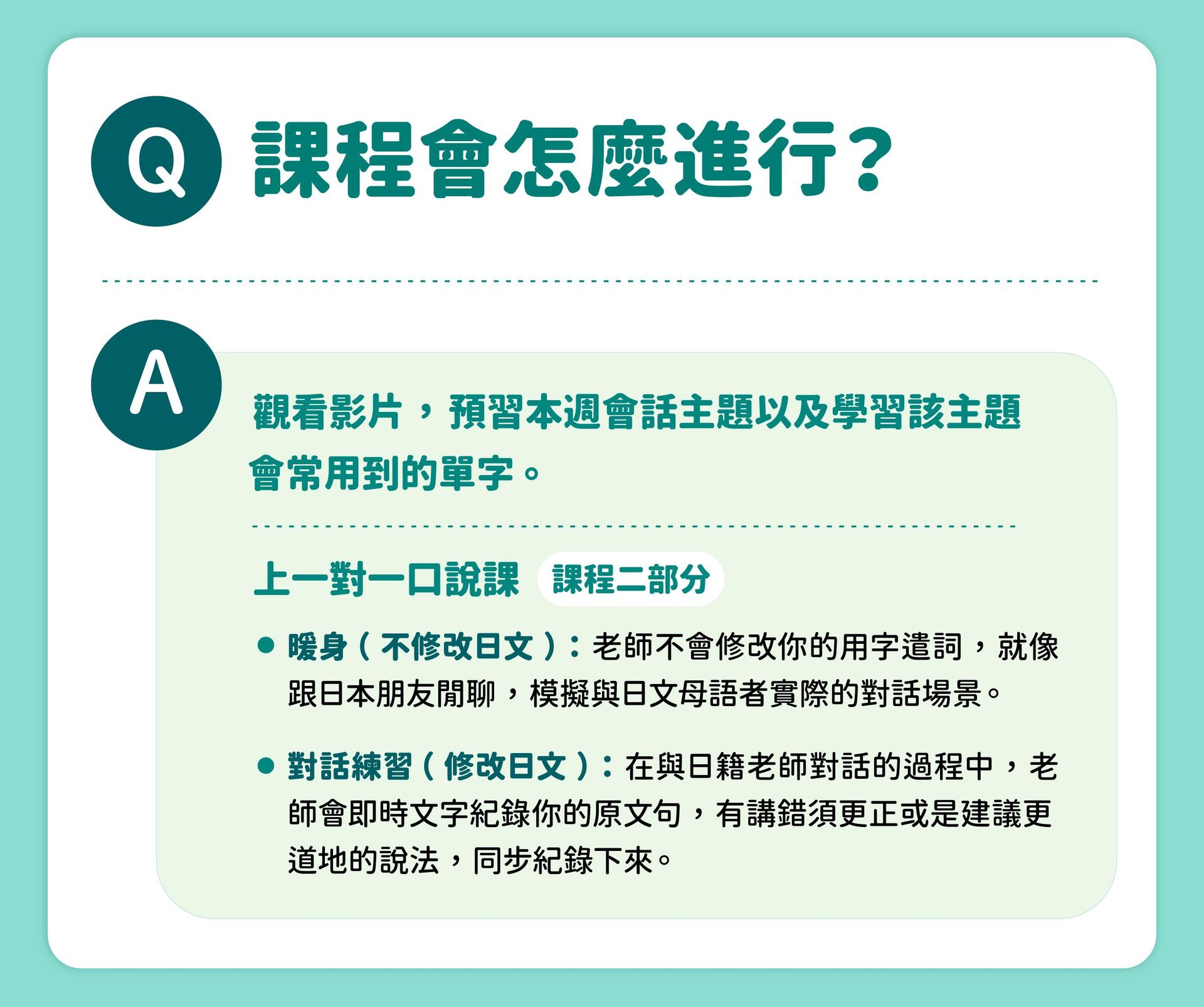 除了能在口說課中直接向日籍教師提問外,我們為同學們另外準備了解題管道