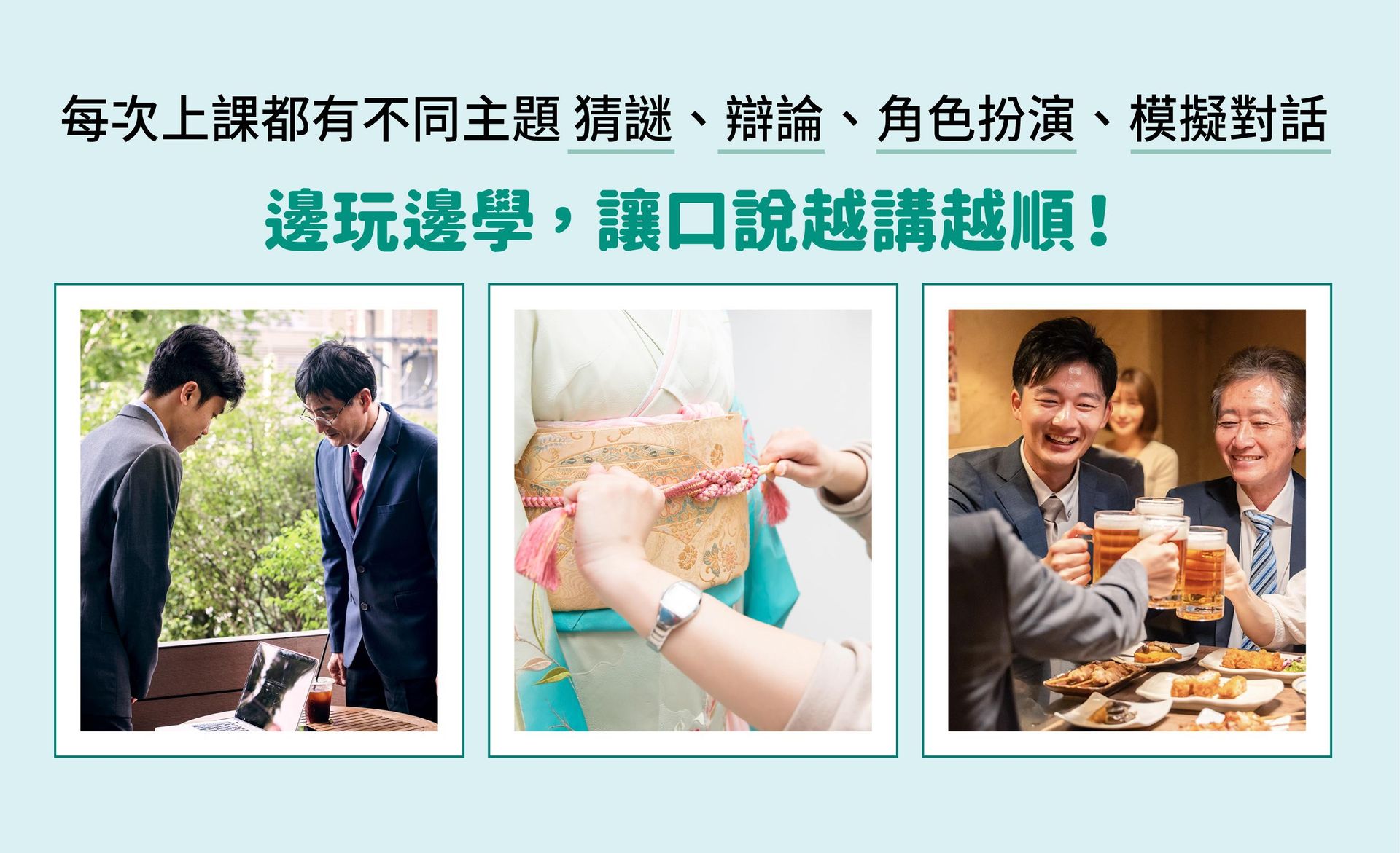 不過上課的練習方式和簡報內容會每年更新,即使是相同主題也會是新的對話內容唷!