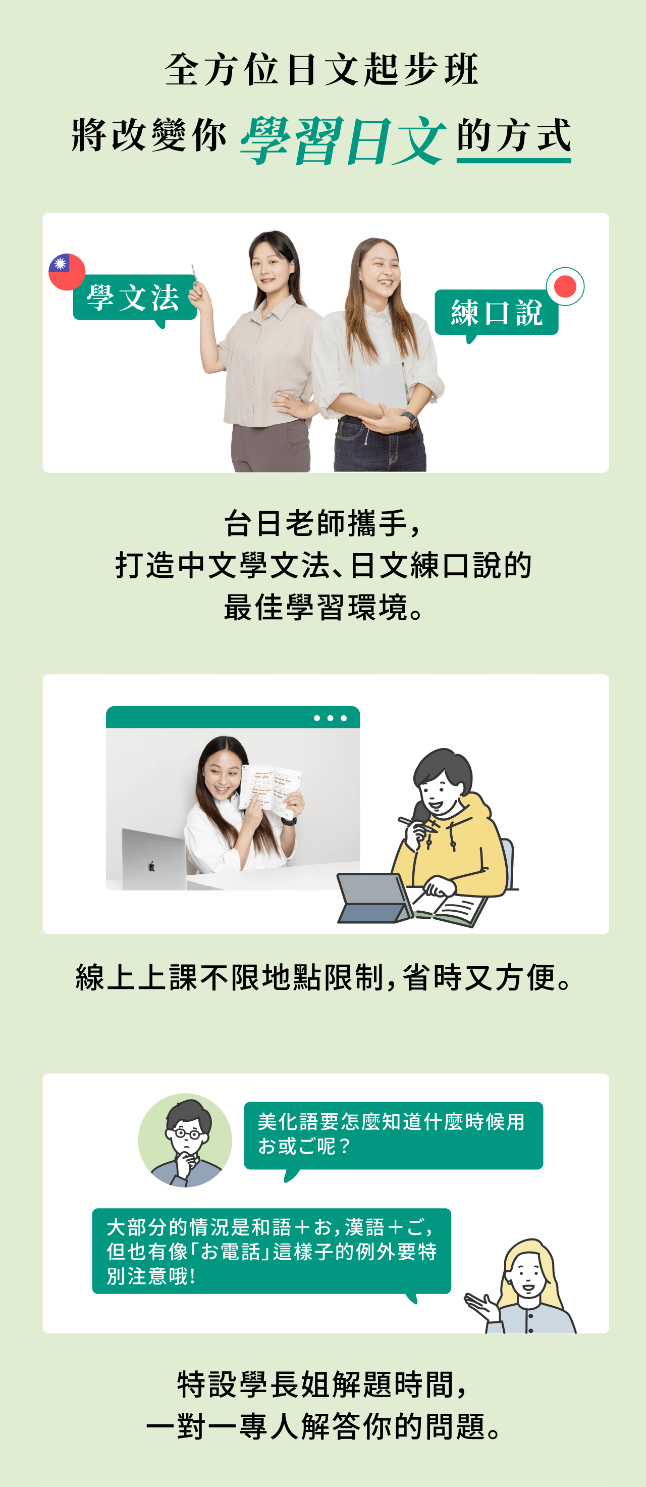 ※ 課程包含文法線上課程及全日文口說課