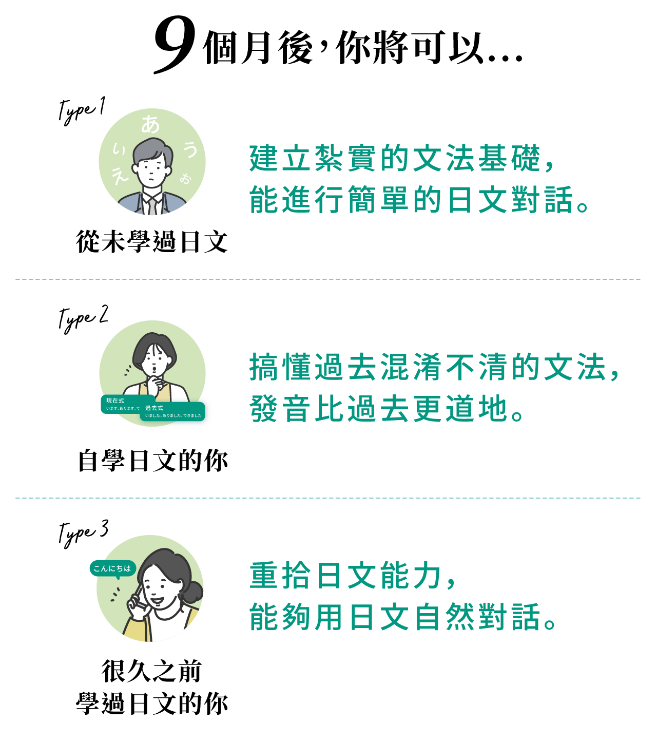 台日雙師資聯合授課,獨家兩階段學習法幫助你九個月從零基礎到能聽能說 N3 程度!